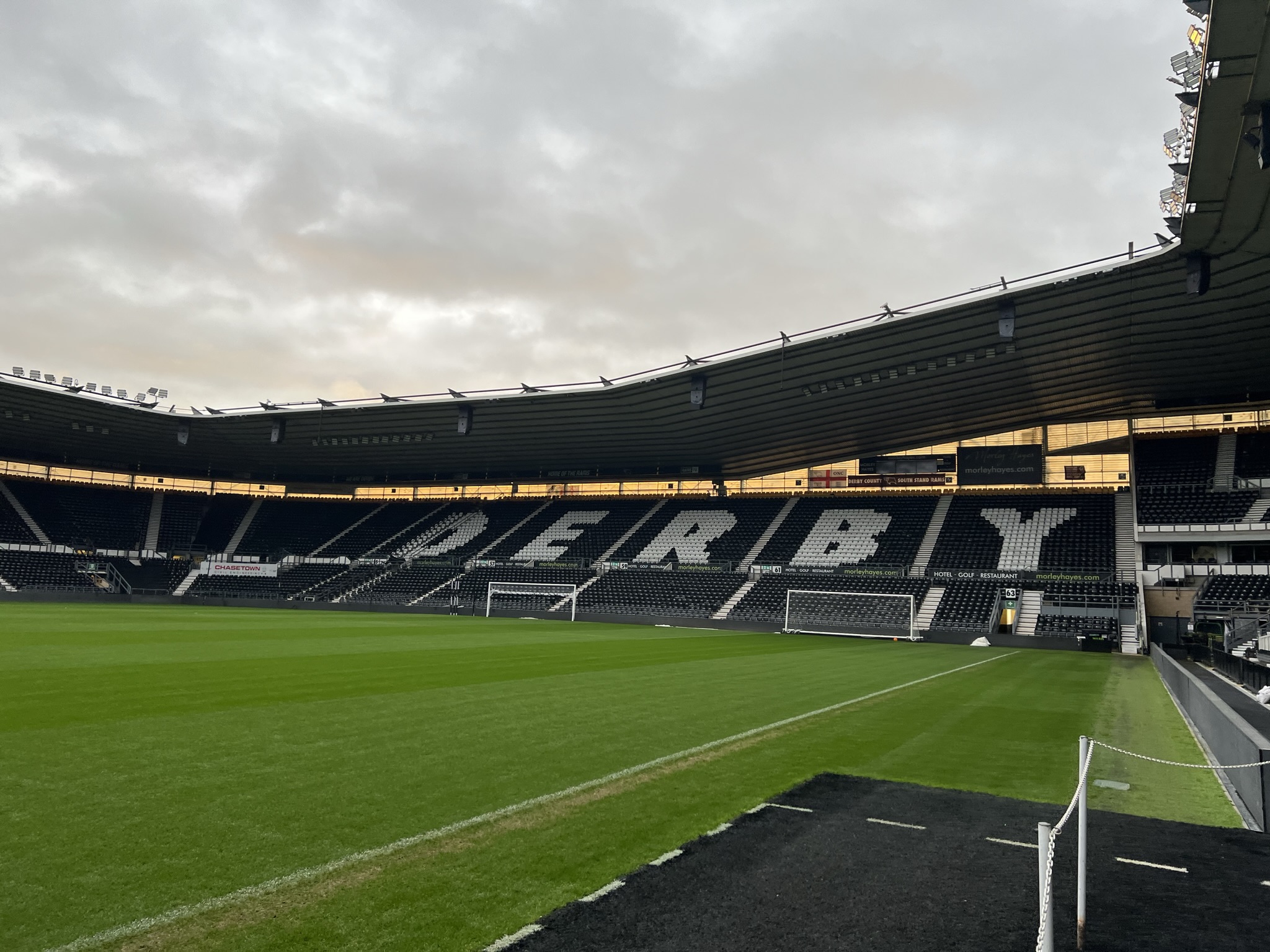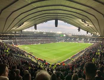 Pride Park Stadium got renamed iPro Stadium in December 2013 following the agreement of a £7-million sponsorship deal with iPro. Much like the new stadiums at Coventry, Reading and Cardiff, 3 sides of the bowl-shaped Pride Park are single tier with an extra level above the Main stand.