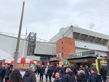 The ground is located outside the city centre, but there are numerous pubs a short distance from the ground. The main away pub is The Arkles, located on Anfield Road (adjacent to the away end), but most pubs around the ground are welcoming of away fans. Fast-food outlets on Walton Breck Road and Oakfield Road, within a stone’s throw distance of the ground.